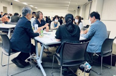 令和7年9月30日(火)午後7時より「にこ♡ふる」で、「歯科医師・歯科衛生士と介護事業所との交流会」を開催しました。今回で10回目の開催です。74名が参加しました。展示業者もあり介護食の試食・展示などを行いブースの前は多数の参加者で賑わいました。
